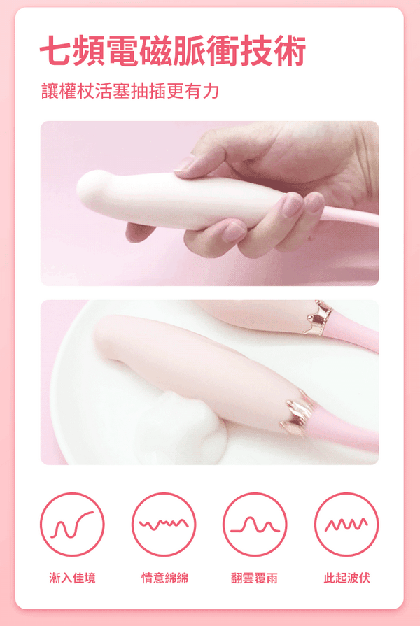 The seven-frequency electromagnetic pulse technology makes the piston of the scepter more powerful. It gradually gets better and better, and the affection is endless, ups and downs.